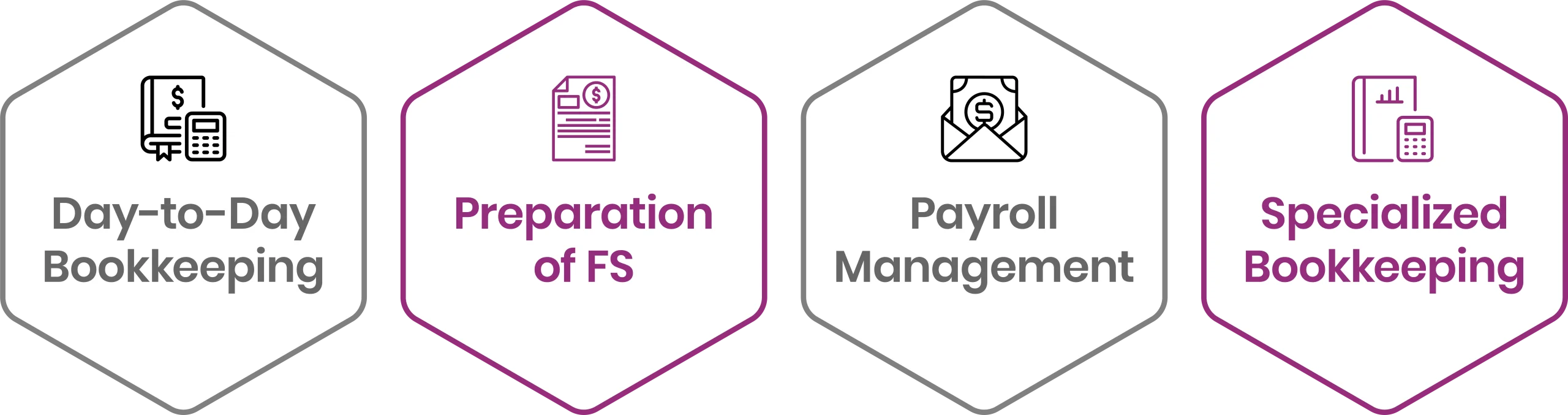 Services often include transaction recording, preparation of financial statements, payroll management, VAT compliance, tax filings, and financial reporting, tailored to suit the needs of businesses.