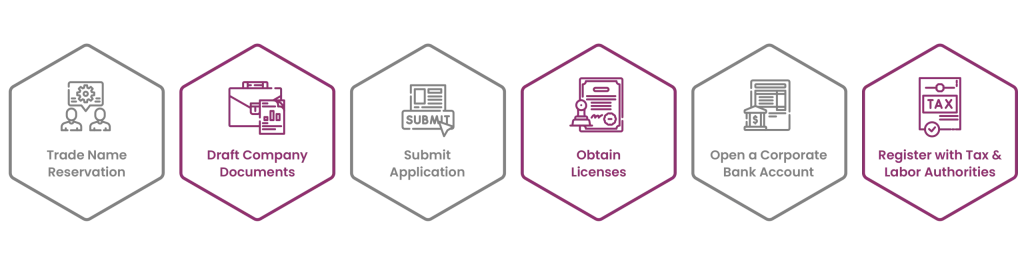 Choose your business activity and structure, reserve a trade name, prepare legal documents, and register with MOCIIP with support from a trusted company formation agent like Al Mawaleh.