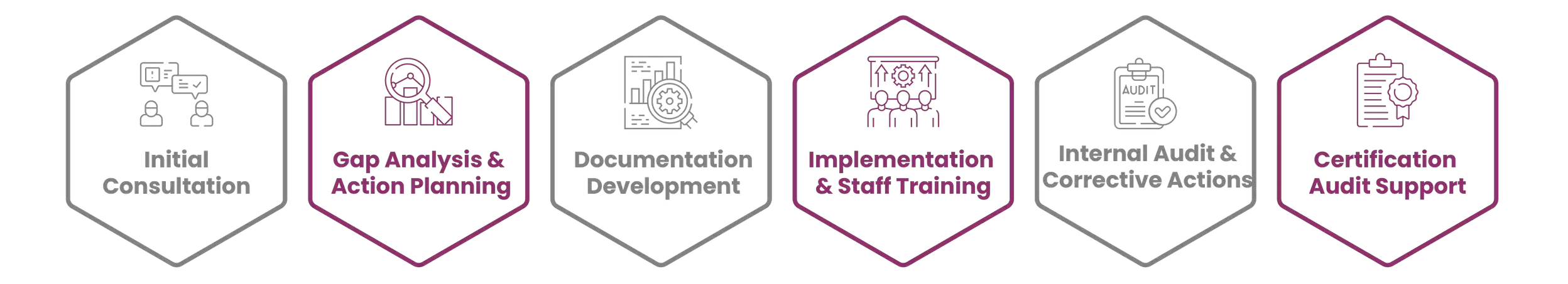 Our ISO implementation process begins with assessing business needs, followed by gap analysis and planning.